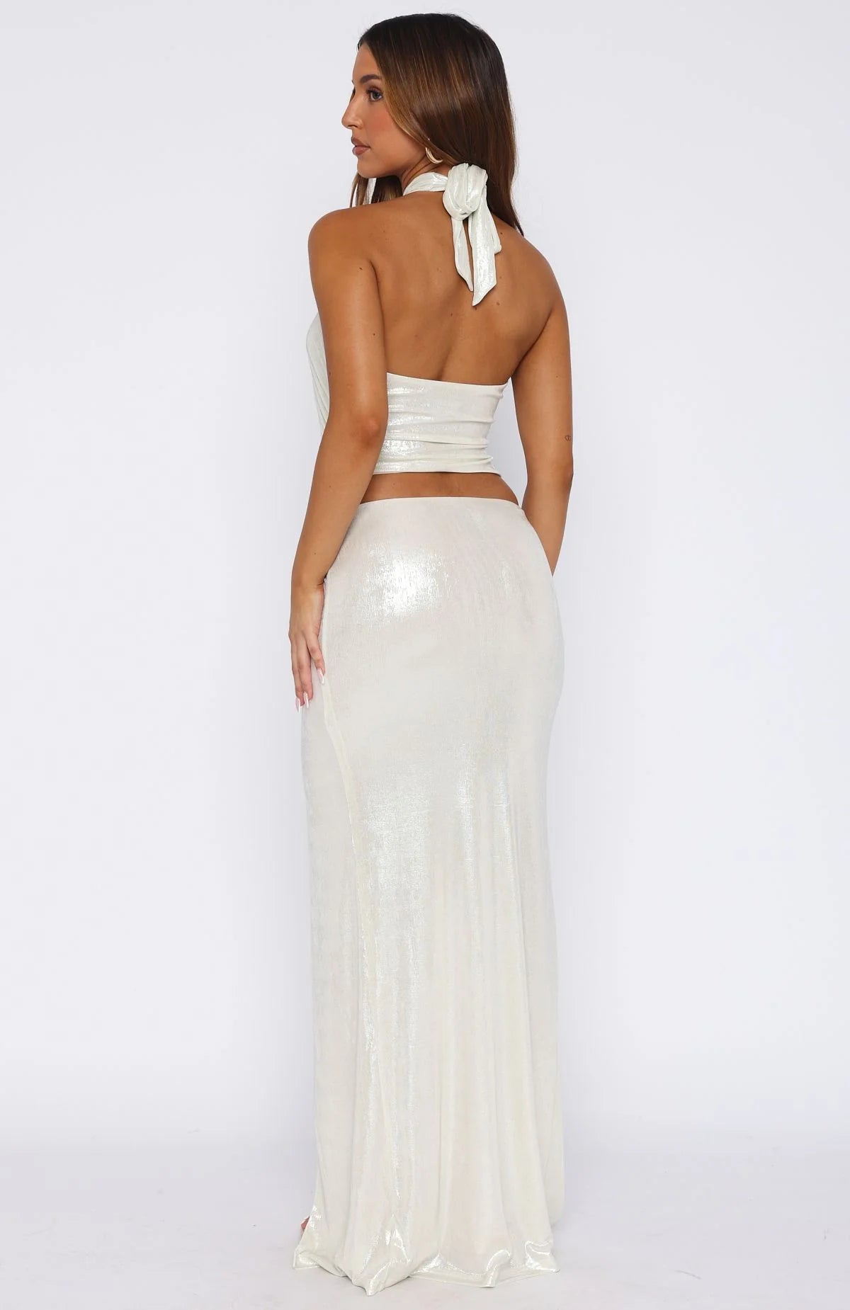 Consider yourself on call for compliments! The I'm On Call Halter Maxi Dress in Pearl features self tie halter straps, criss cross fabrication at bust with grip tape, cut out design over waist, thin elasticated waistband, gathered design with tassel on skirt front, front skirt split for walkability ease and lined. Let the dress speak for itself and pair with clear wedges and simplistic gold jewellery.