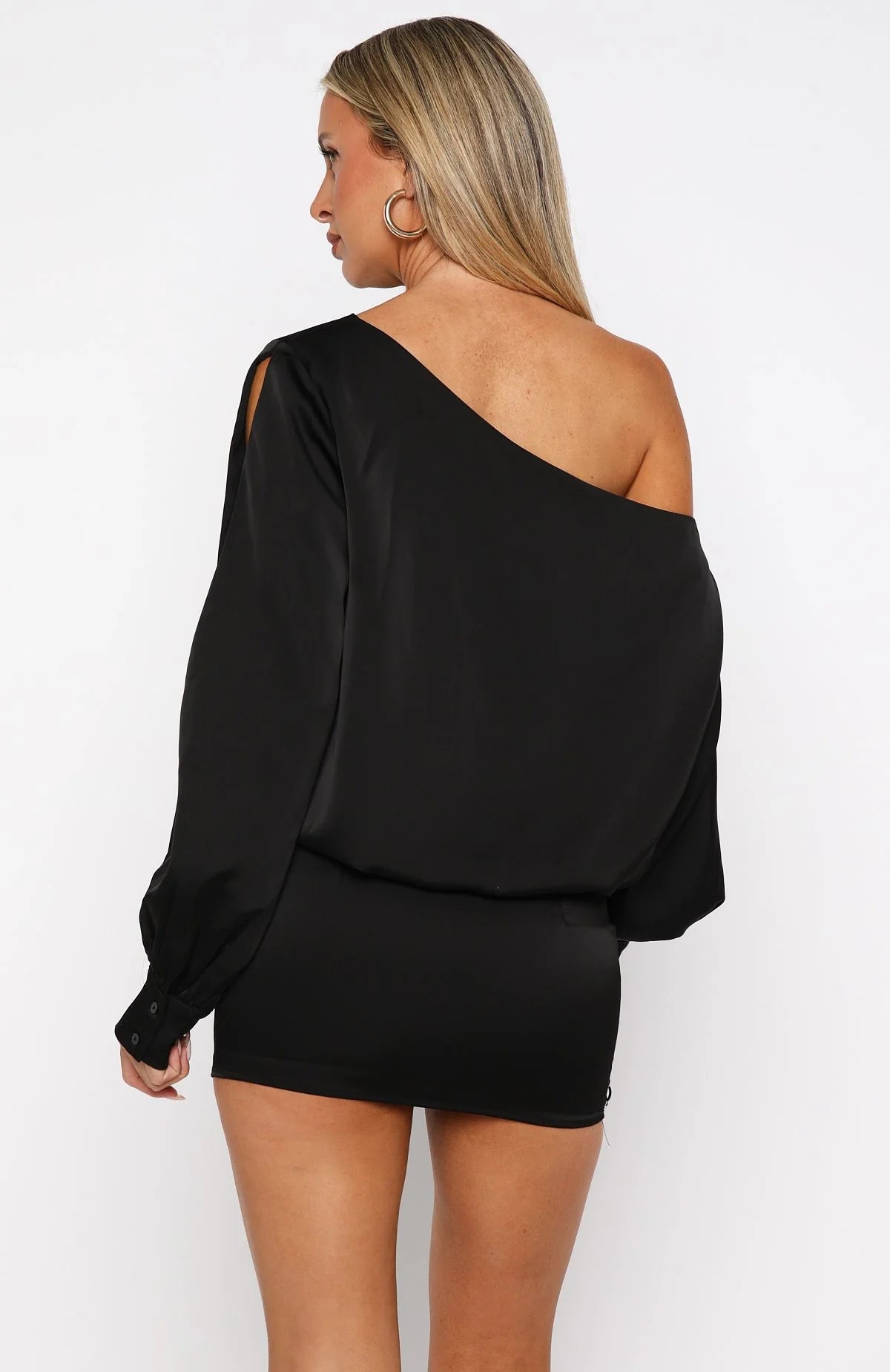 The Love Letter Long Sleeve Mini Dress in Black is a party-ready piece that speaks for itself. Featuring an off-the-shoulder design, long sleeves with cuff and button detailing, figure hugging fit at skirt with side self-tie, lace-up closure and lined material. Style with simple heels and jewellery to let the dress do all the talking.