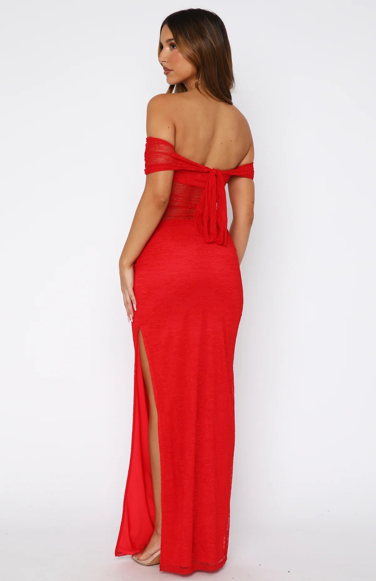 Spice things up in our Matcha Baby Strapless Maxi Dress Chilli Red! Features an off‑the‑shoulder neckline and delicately ruched bodice. The fitted, lined bust transitions into a sheer lace panel at the waist, creating a subtly sultry contrast, while the flowing maxi skirt is cut with a leg split for just the right amount of drama. Adjustable straps at the back ensure a flawless fit. Continue the statement by styling with kitten heels and gold accents - whether it be a dainty necklace, statement earrings or layered rings.