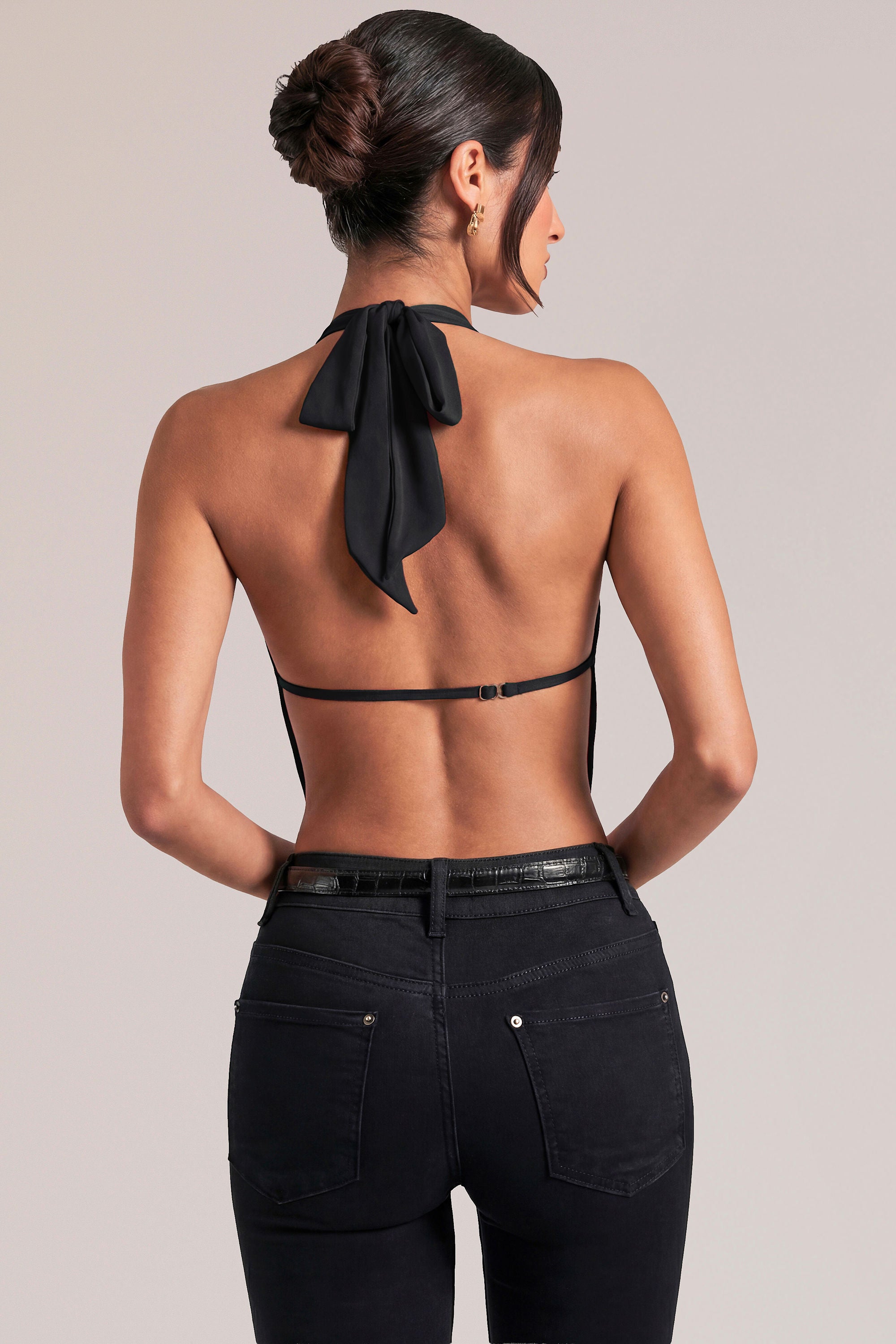 A versatile top crafted to move with effortless elegance. Cut to a fluid, body-skimming silhouette, this top is crafted from our favourite slinky jersey for a subtle shine and effortless drape. The deep, draped cowl neckline is anchored by a halterneck tie and finished with an adjustable back strap, creating a sculpted, open-back profile that flatters from every angle.